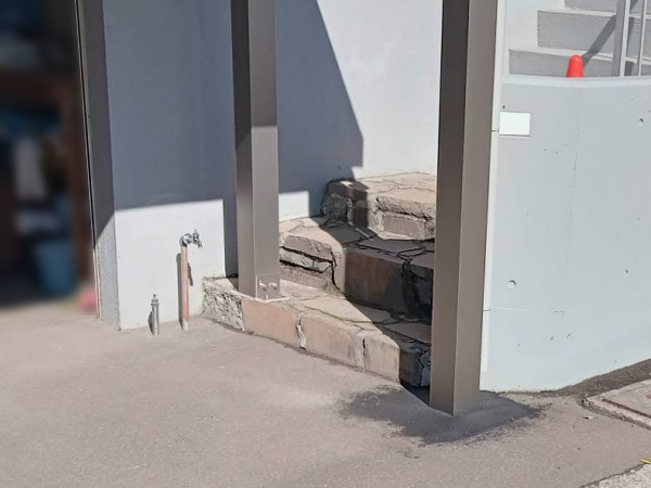 階段上への柱設置は、金属製の土台を取り付けて対応しました。