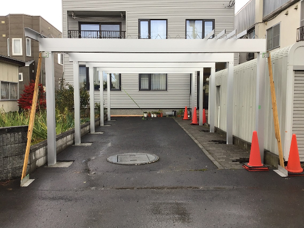 【2024年4月 札幌市 T様邸】既存の1台用カーポートの前スペースに増築。