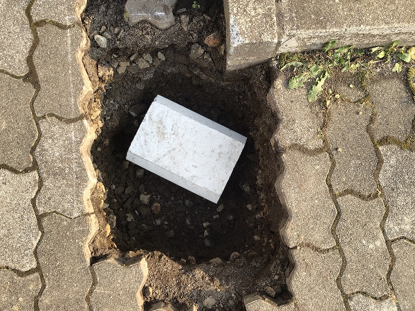 柱周辺のインターロッキングブロックもキレイに補修。