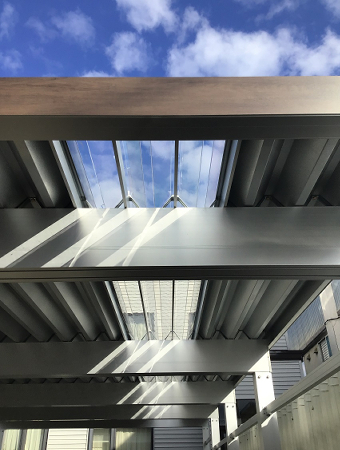 採光型屋根材を取り入れた縦連棟タイプのカーポート。